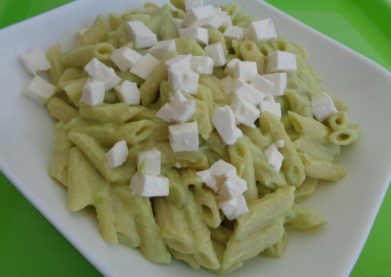 Macarrones con salsa de aguacate