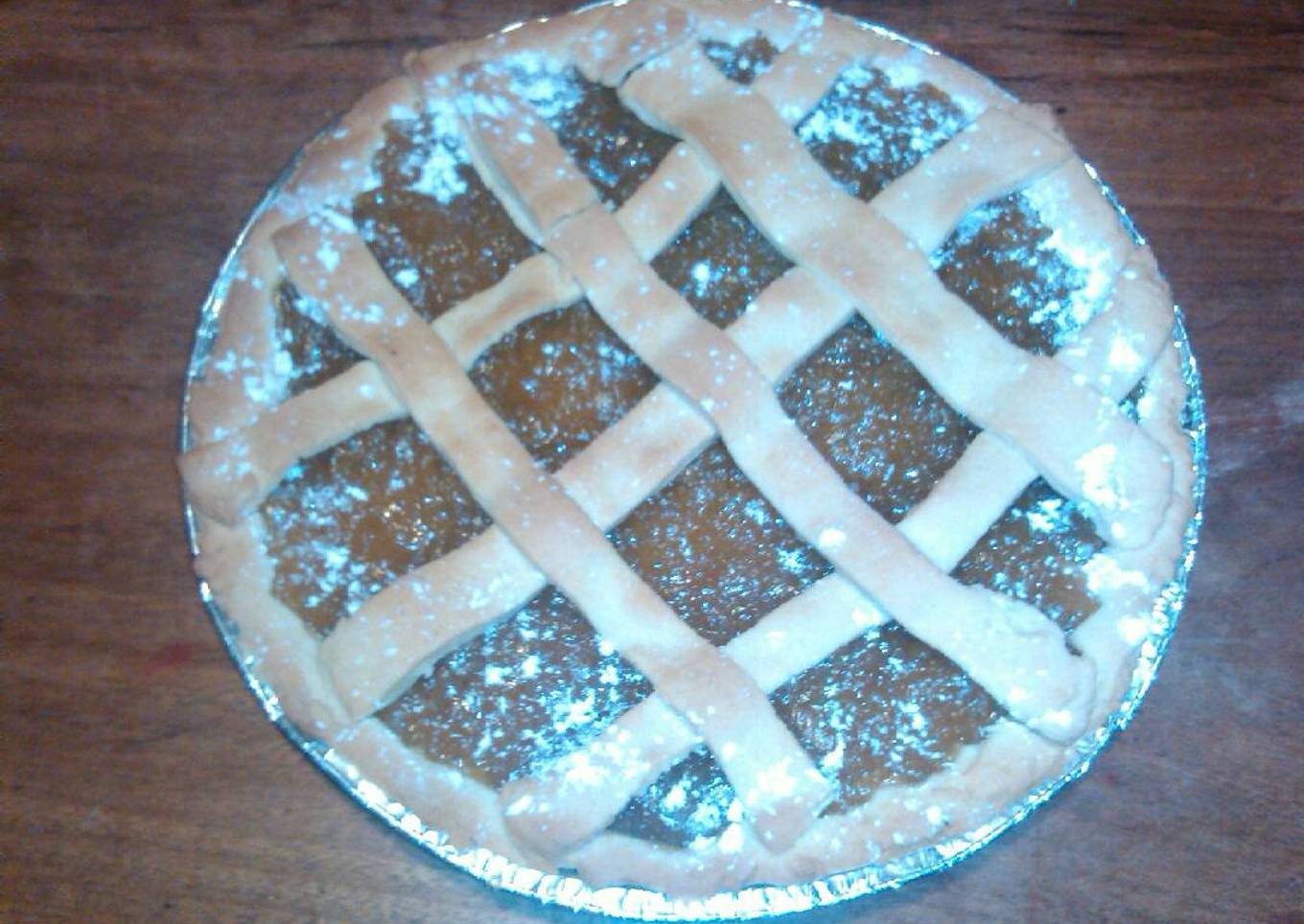 - Rellenar con el dulce y con la masa sobrante hacer tiras para cubrir la tarta. Para que quede brillosa se puede untar mermelada de durazno diluída con agua sobre la batata.