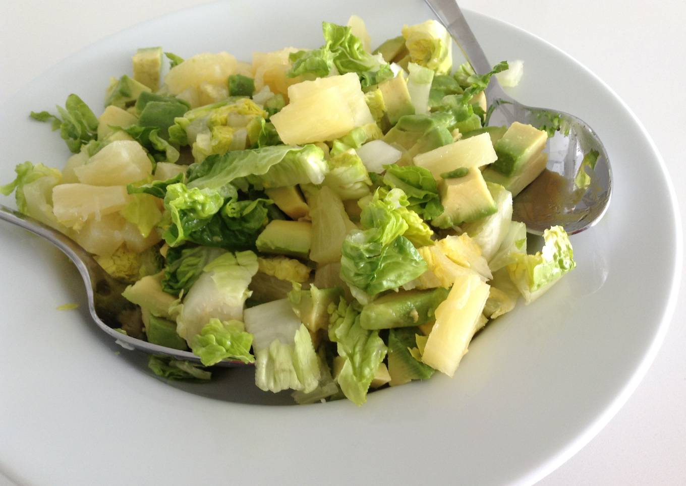 - Ver paso a paso en vídeo cómo hacer la ensalada de aguacate y piña de dieta: