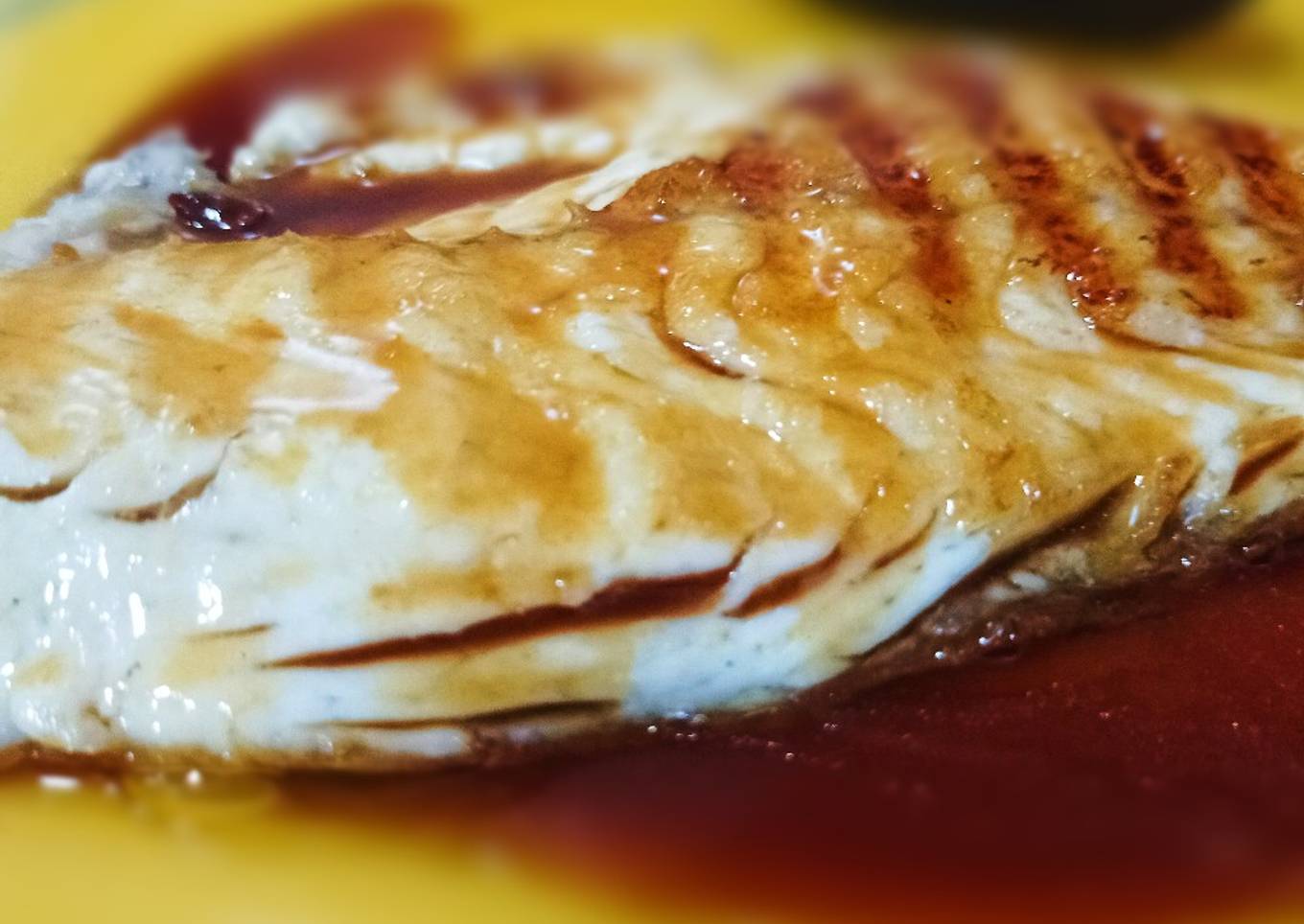 - Hacemos la salsa casera para pescado, (salsa de pescado, ostras y teriyaki, zumo de limón, cayena, vino blanco), dejando reducir la mezcla