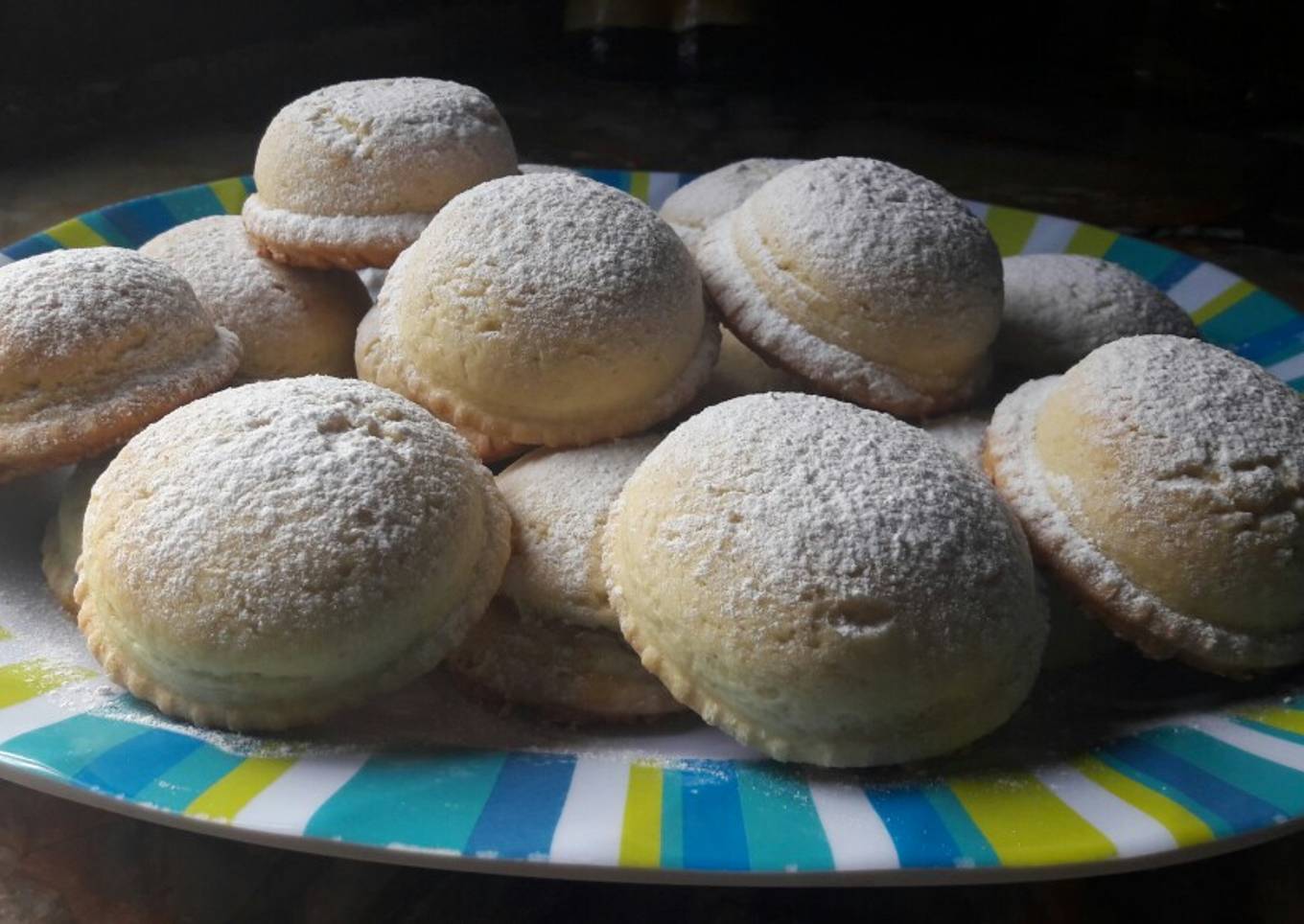 - Sacar la masa y estirar en forma rectangular y poner sobre el molde de sorrentinos. Con mucho cuidado ya que es una masa muy suave, antes de poner la masa espolvorear el molde con harina. Rellenar con el dulce elegido, pincelar los bordes con un poquito de agua y tapar con otra capa de masa, presionar levemente y pasar el palote para que se pegue bien. Desmoldar con cuidado y poner en placa enmantecada y enharinada.